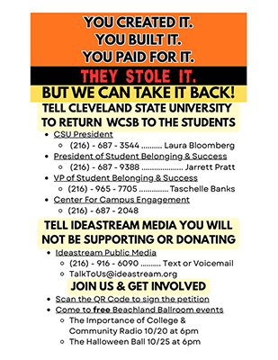 - 10/17/25, Cleveland.com: Students, community decry ‘authoritarian takeover’ of CSU radio station by Ideastream
